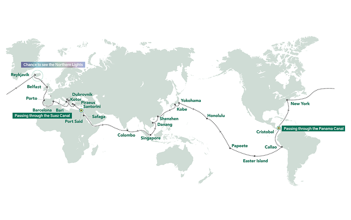 More Spacious, More Refined. A sophisticated, properly distanced cruise that offers you a safe and pleasant environment for your around-the-world journey.