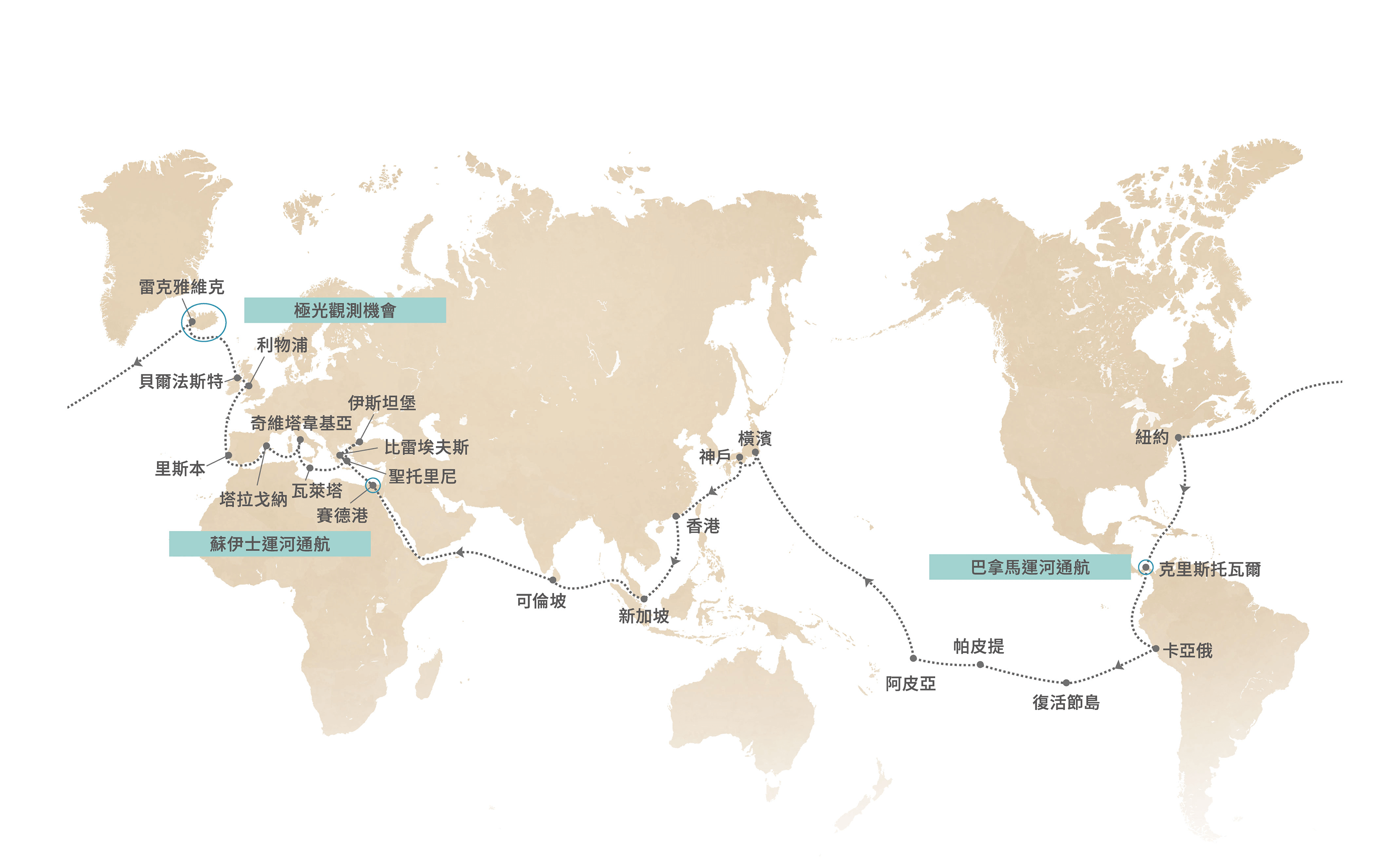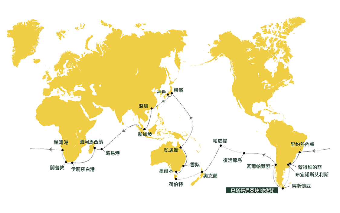 新加坡 - 橫濱, 日本:2027年8月23日~2027年11月29日,99天