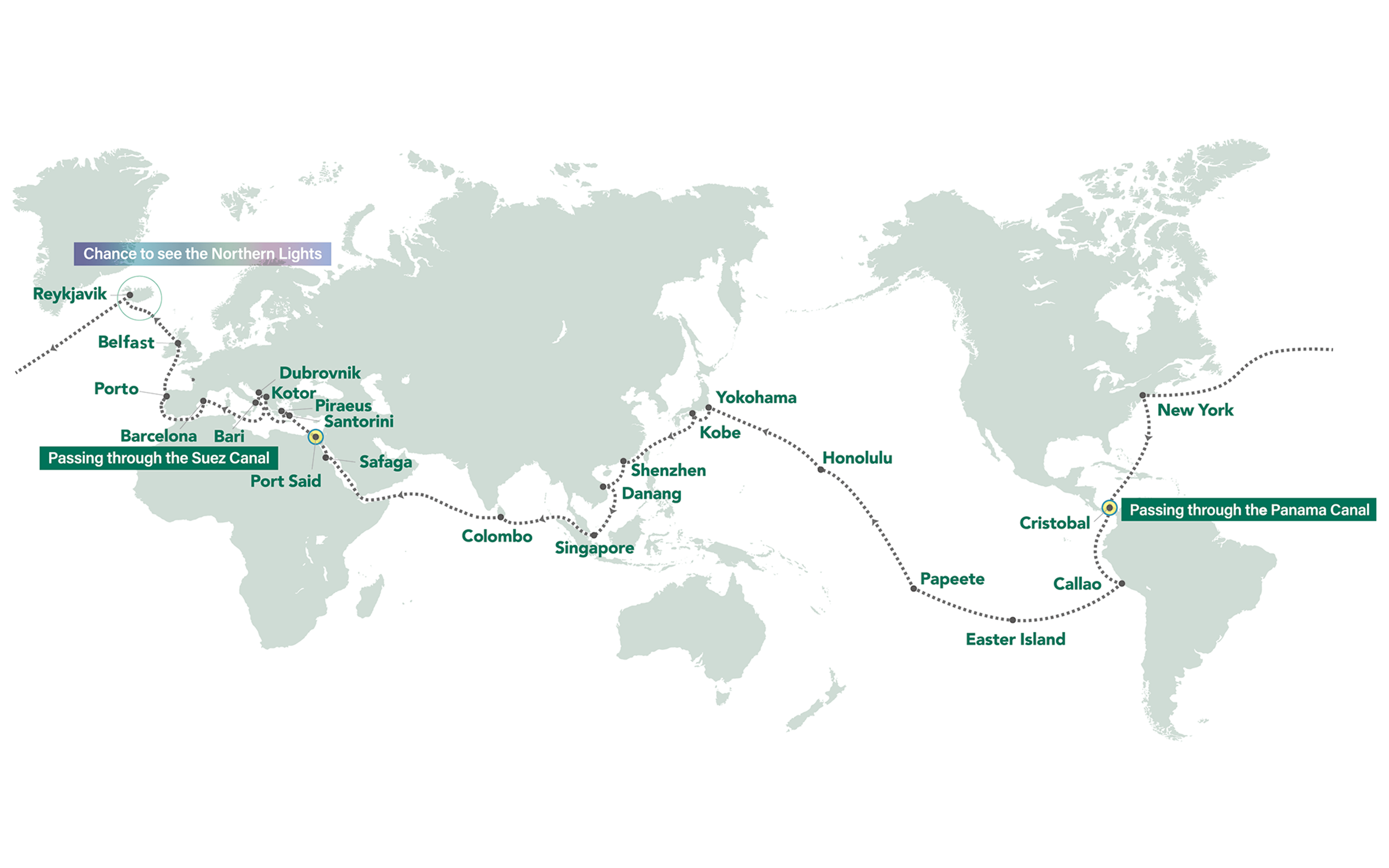 More Spacious, More Refined. A sophisticated, properly distanced cruise that offers you a safe and pleasant environment for your around-the-world journey.