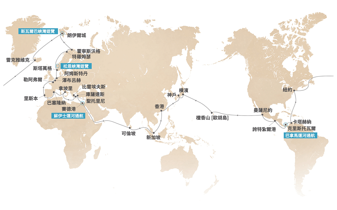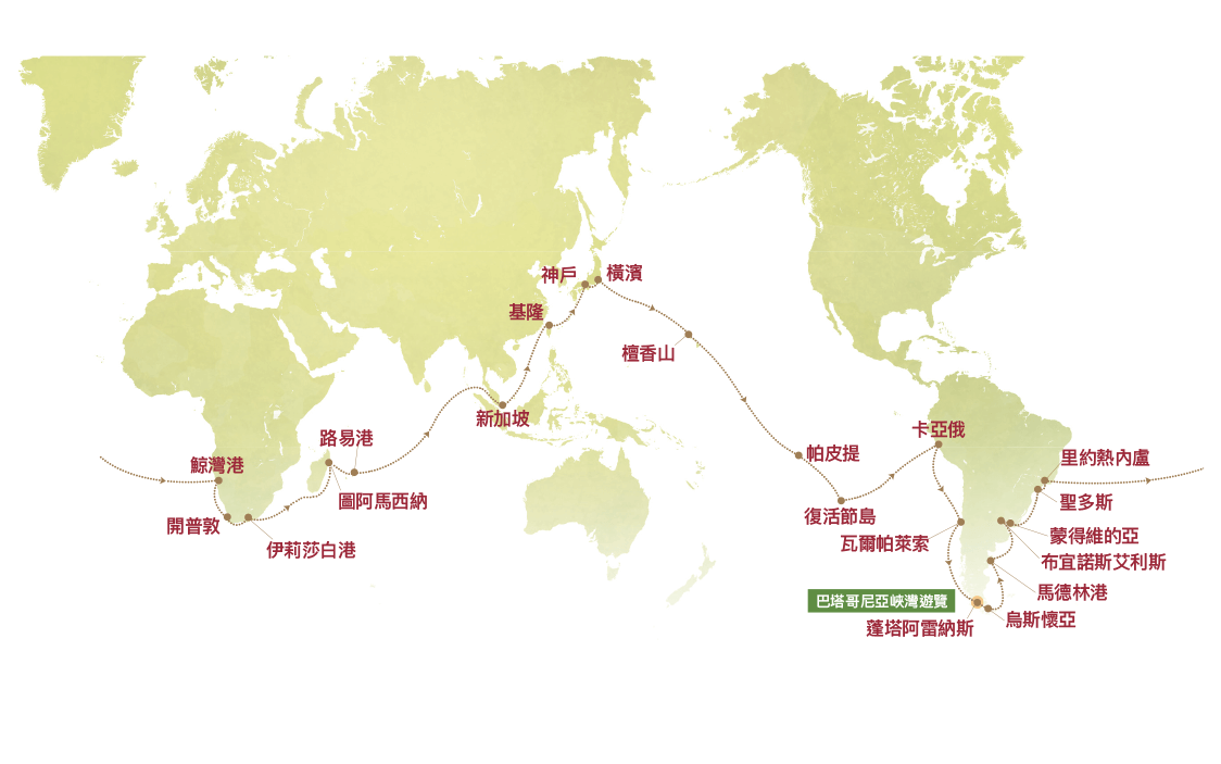 新加坡 - 橫濱, 日本:2027年8月23日~2027年11月29日,99天